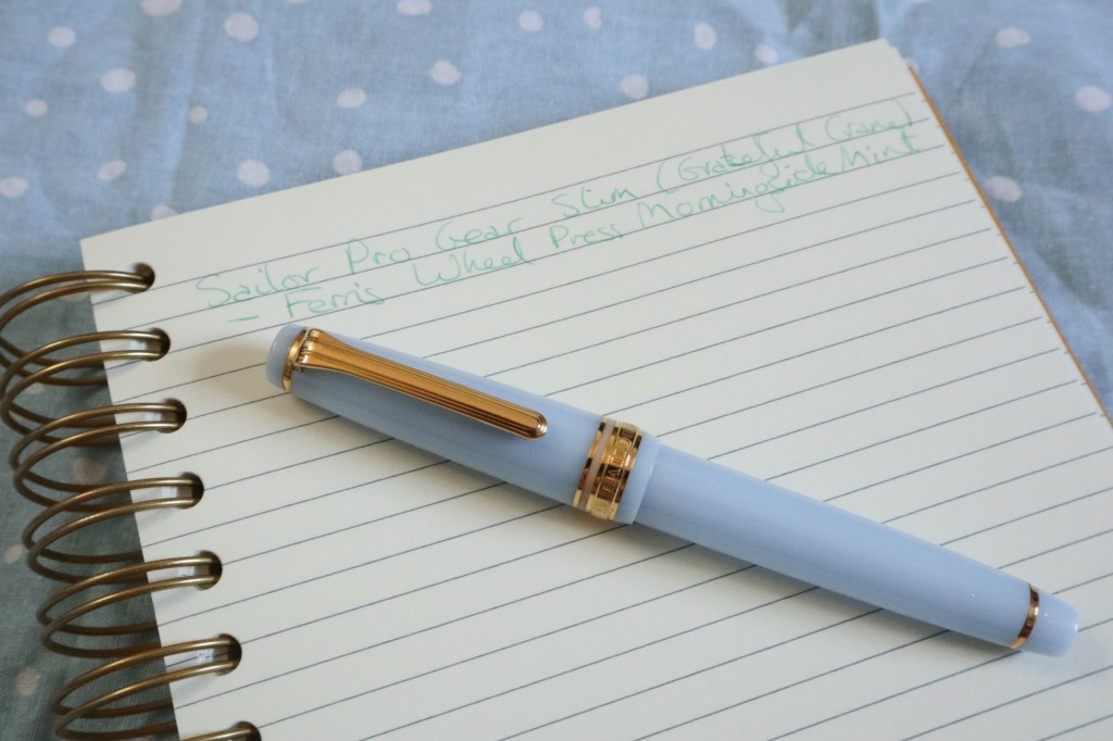 I currently have it inked with Ferris Wheel Press Morningside Mint, and whilst I’ve been enjoying the combination of pastel colours, I don’t love it, so I’ll probably swap it out soon. Especially as it isn’t the most legible ink in this medium-fine nib!