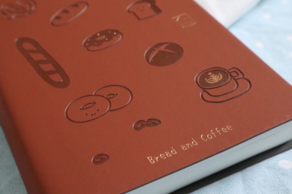 The cover might not be everyone’s cup of tea, as it has a slightly rubbery texture with the bread and coffee design embossed in a darker brown. The gold highlights are a nice touch though, as are the matching brown end papers inside the planner.