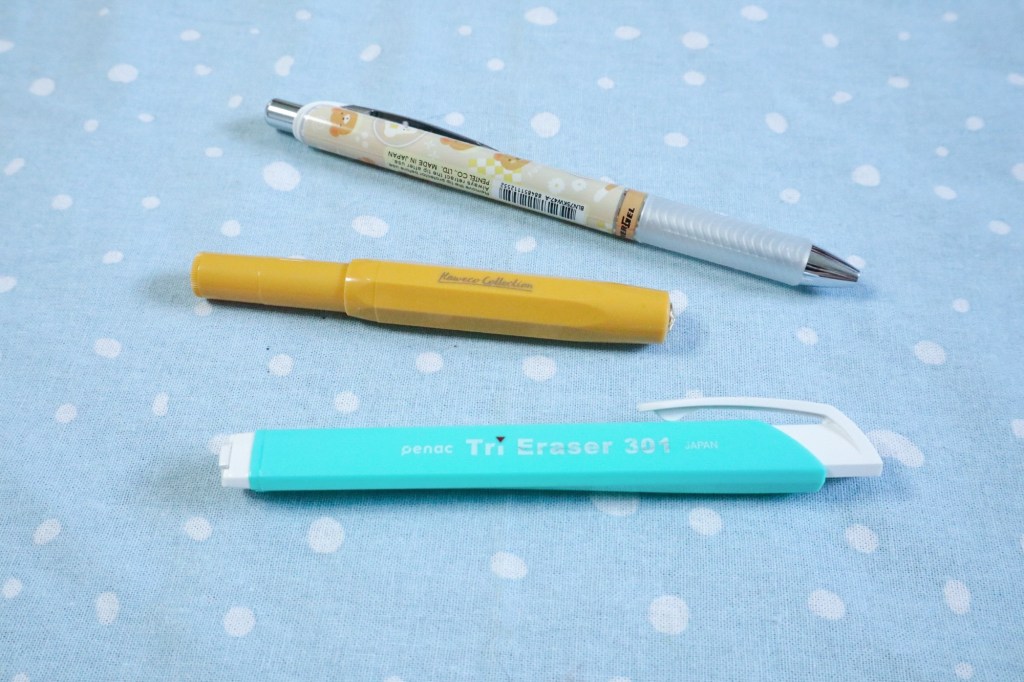 And I also got a food/bear themed Pentel Energel that I thought was super cute, and a Penac Tri Eraser 301, which is a retractable eraser.