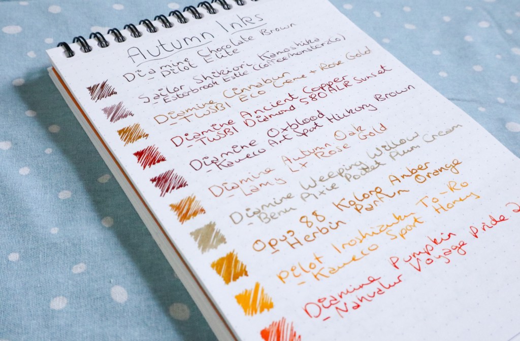 This month I’ve been cleaning out and reinking a lot of my pens for the Autumn. You can see here a little snapshot of some of my Autumnal inky choices, but I may do a full post on this soon.