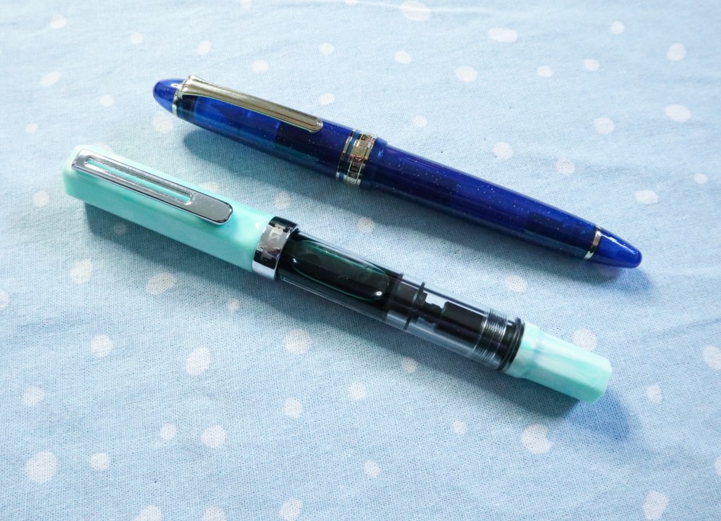 As I’ve discussed previously, I bought the TWSBI Eco Amazonite and the Sailor 1911 Hoshizora for fountain pen day, so they’re two of my most used pens this month.