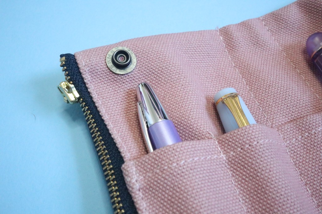 I’d also note that although the slots will hold chunkier pens, it does make the pen case bulky, and at a certain point you can no longer fasten the poppers. For example, I put four TWSBI Ecos in the case, and it wouldn’t close properly.