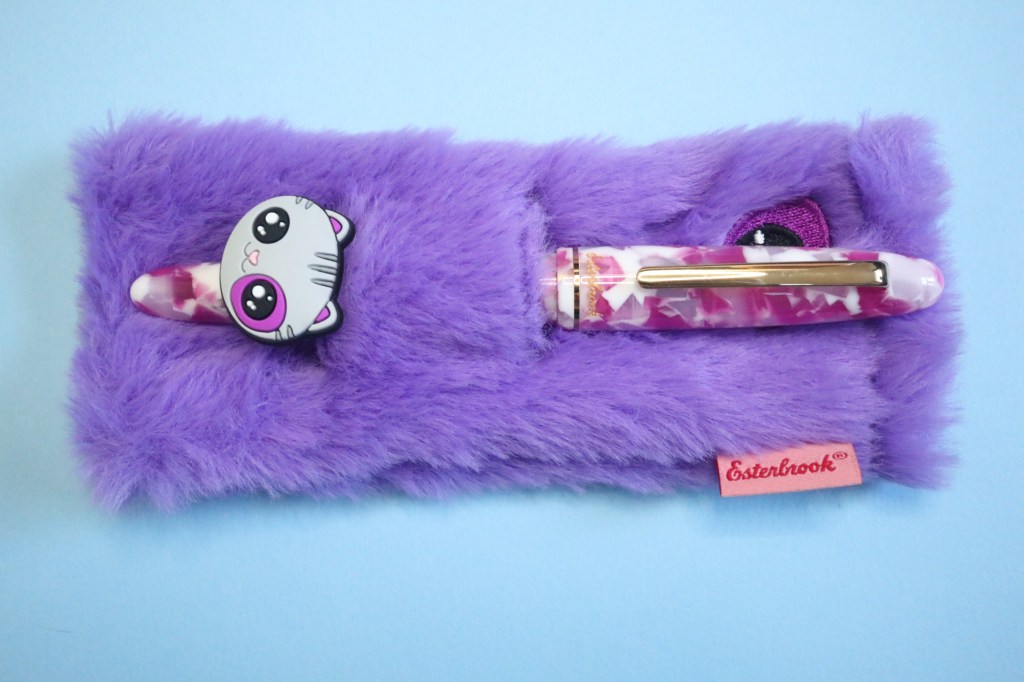 Both Estie Bestie pens come with the same cute packaging and cat-themed accessories: a fuzzy purple pen sleeve and a cat pen charm. These are very cute, but I don’t necessarily think they go well with the Bubblegum Pink pen, and I can’t really see myself ever having the pen charm on the pen. I’ll definitely use the cute little pen sleeve when travelling though, although I think one of my purple pens would go better with it.