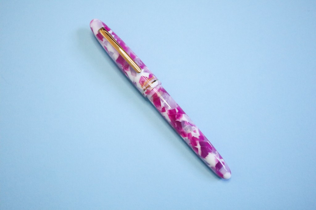 And this pen really is eye-catching! It’s a stunning combination of vibrant hot pink with white and a tiny bit of purple in it, plus a translucence I hadn’t expected. I really liked the companion pen to this too – the Estie Bestie in Sugarplum Purple – but the pink one stood out to me a lot more.